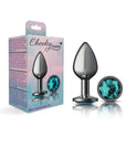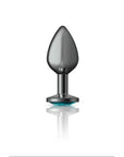 Cheeky Charms - Round Butt Plug with Teal Jewel - Medium - Gunmetal