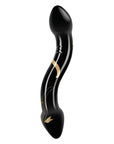 This elegant black and gold 7.5 inch curvy beauty can be used for stimulation with a partner or during solo play.