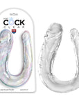Experience the ultimate in pleasure with the King Cock Clear Large Double Trouble. This double penetration dildo features a translucent design that mimics a realistic cock, complete with a flexible shaft, detailed veins, and a defined head.