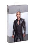 Power Wetlook Mens Jacket with Pleated PVC Epaulets - Black by Noir Handmade