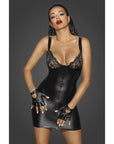 This risqué short dress has a lace chest and velvet straps and is made from signature powerwetlook material.