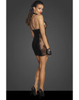 Power Wetlook Short Tulle Dress with Inserts & Corset Binding - Black