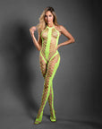 SHEER UNSTOPPABLE Halter Bodystocking - Neon Green