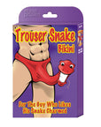 Deadly serious yet also playful, the Novelty Trouser Snake Bikini is always just seconds away from a venomous encounter. Open mouthed with tongue hanging out surely mean hours of slinking and slithering. Stretchy polyester-spandex blend keeps you comfortable when hunting prey.