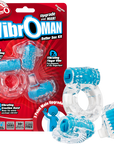 The VibrOman is the ultimate sex toy starter kit for couples exploring vibration in all its forms. This convenient collection offers him a 3-point upgrade with three powerful mini vibes designed to stimulate in very different ways. The mini tongue vibe stretches to fit around his tongue to add a vibrating boost to any cunnilingus session. The mini fingertip vibe sits at the end of any finger and makes it easy to tease, tickle and massage every erogenous zone – especially the clitoris to help orgasms come easier during intercourse! And the vibrating ring makes his whole package vibrate thanks to a super-stretchy ring that fits comfortably around his penis and testicles.